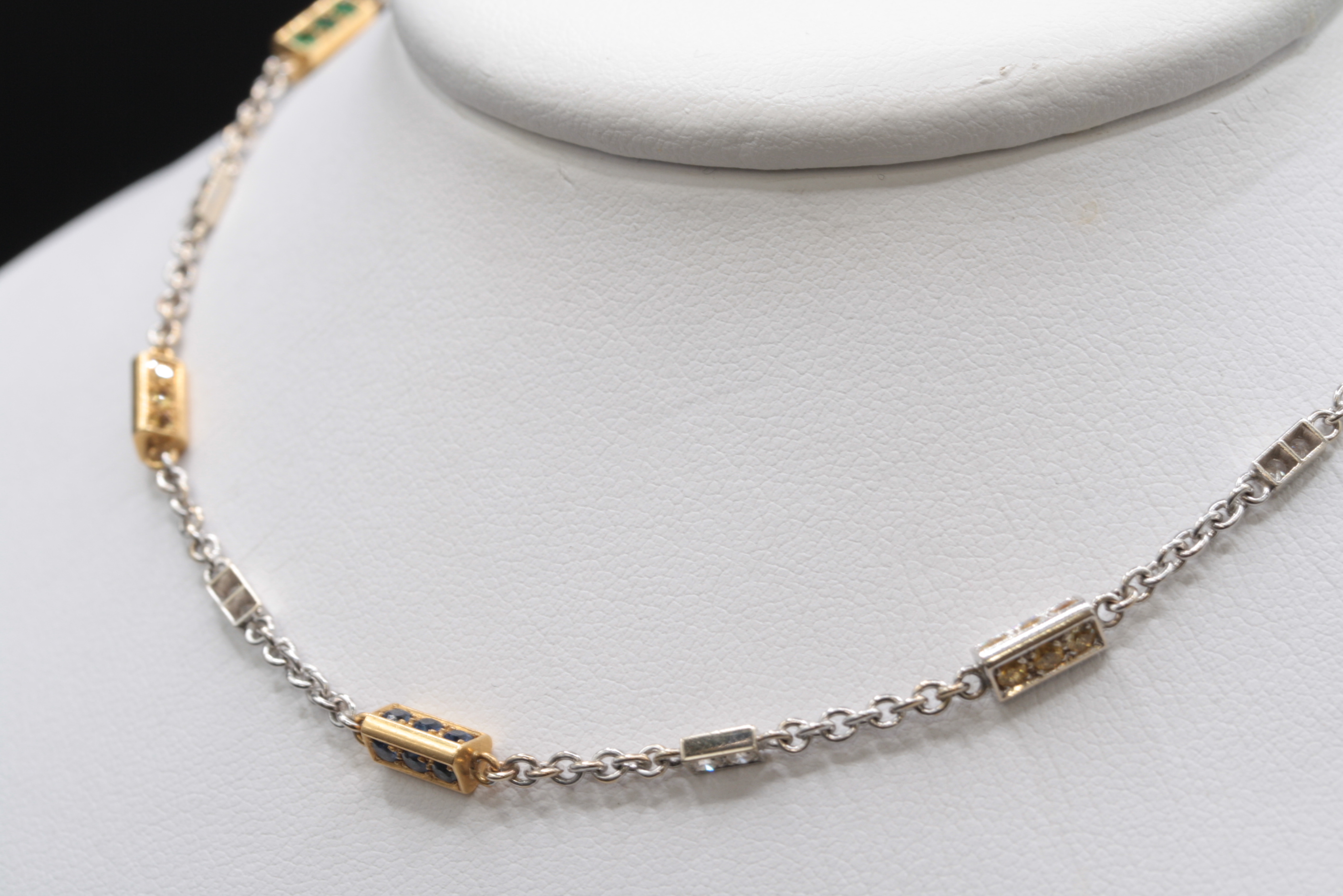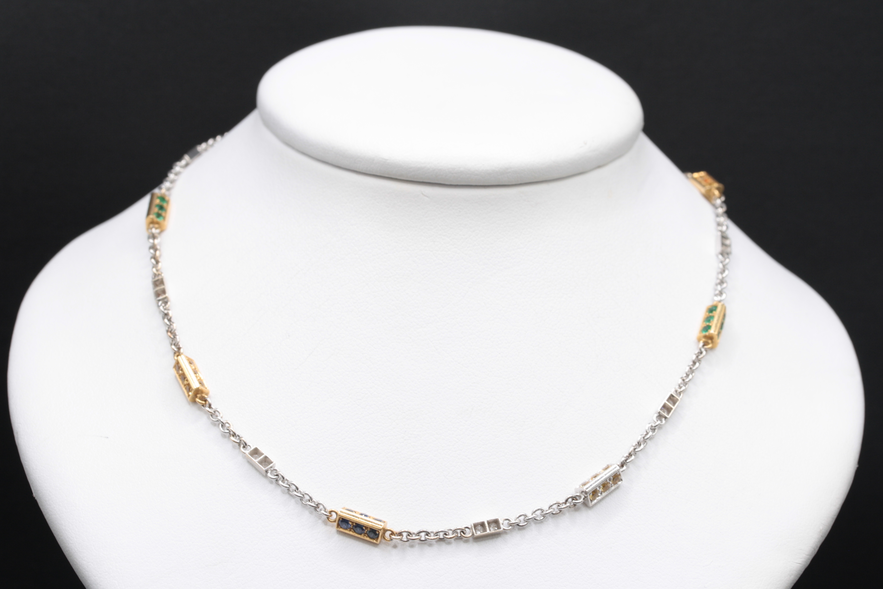 Collana in oro giallo e oro bianco 18kt con diamanti naturali e pietre colorate